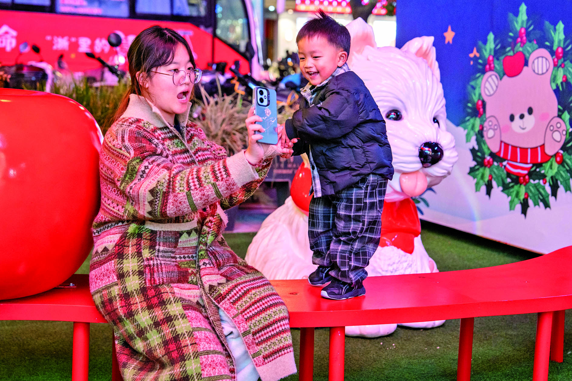 临近2026年,市区不少商圈的商家纷纷换上绚丽的新年装扮,以热闹、喜庆的姿态迎接新年的到来。