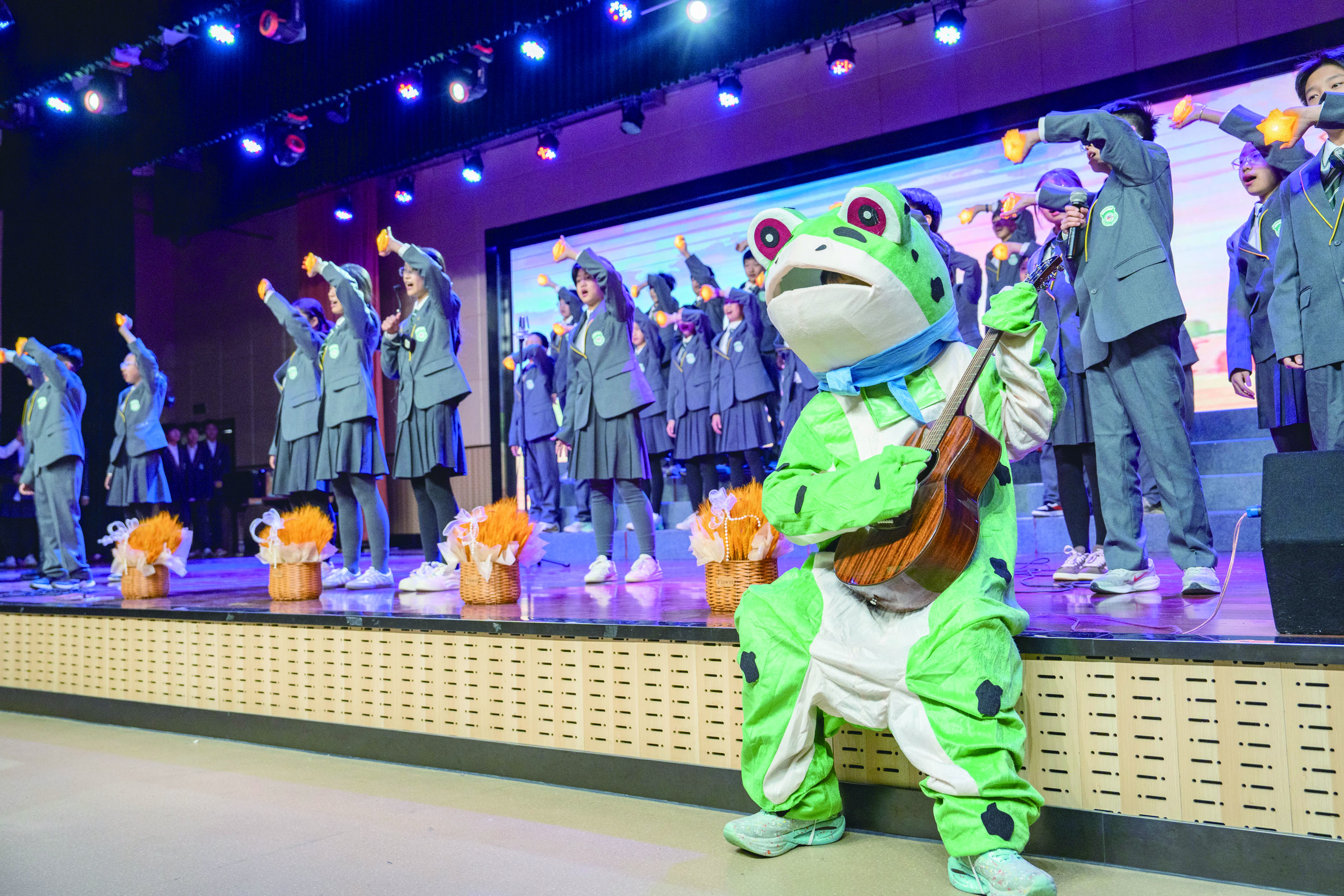 昨日,金华市荣光学校初中部近千名师生齐聚一堂,举办迎元旦文艺汇演,每一个节目都饱含着对祖国的祝福,每一段表演都承载着同学们的创意和才华,大家借助这个绽放青春、展现自我的舞台,一同迎接新年的到来。