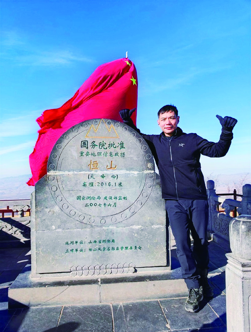 “登顶那一刻,特别想给自己的勇气用力鼓掌!”丁丹感慨道。在爬山过程中,也曾经有想放弃的时刻。“爬恒山的经历是最刻骨铭心的,天气恶劣,狂风直吹,四周空无一人,仿佛天地之间只有我一人。”丁丹回忆,因为冬季登山,温度较低,尽管带了充足的衣物,被刺骨的寒风刮过时,仍能感受到低温的煎熬。更让人难熬的是,接近顶峰处,一段近乎垂直的陡坡横亘眼前,山道狭窄得仅容半足,必须依靠身侧冰冷的铁链借力。雨后的石阶覆着一层薄冰,每一步都踩在滑坠的边缘。体能濒临极限,湿滑的台阶、冻手的铁链、凛冽的狂风,连同身体的疲惫,交织成一张巨大的意志之网,考验着他最后的坚持。