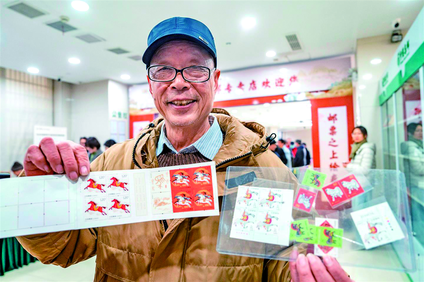 《丙午年》特种邮票昨日正式发行,全套共2枚,小本票1本同步面市。昨天上午,记者在金华邮政集邮专卖店大厅见到,市民和集邮爱好者已排起了长队。金华邮政分公司集邮门市部共投放《丙午年》邮票套票6320套,小本票209本,其中线上预售套票1120套,小本票139本;网点现场销售套票5200套,小本票70本。每套邮票2.4元,小本票16元。 “我20岁时集到第一张马年邮票,加上今年刚买到手的,就集齐了4轮马年生肖邮票,太有成就感了。”68岁的生肖邮票收藏爱好者严政笑着说。 《丙午年》特种邮票对应生肖马,今年金华市竹马邮政所入选生肖原地邮局名单,不少市民特意加盖上带有“马”字的地名邮戳,让邮品更具收藏意义。 本报记者 傅俊 文/摄