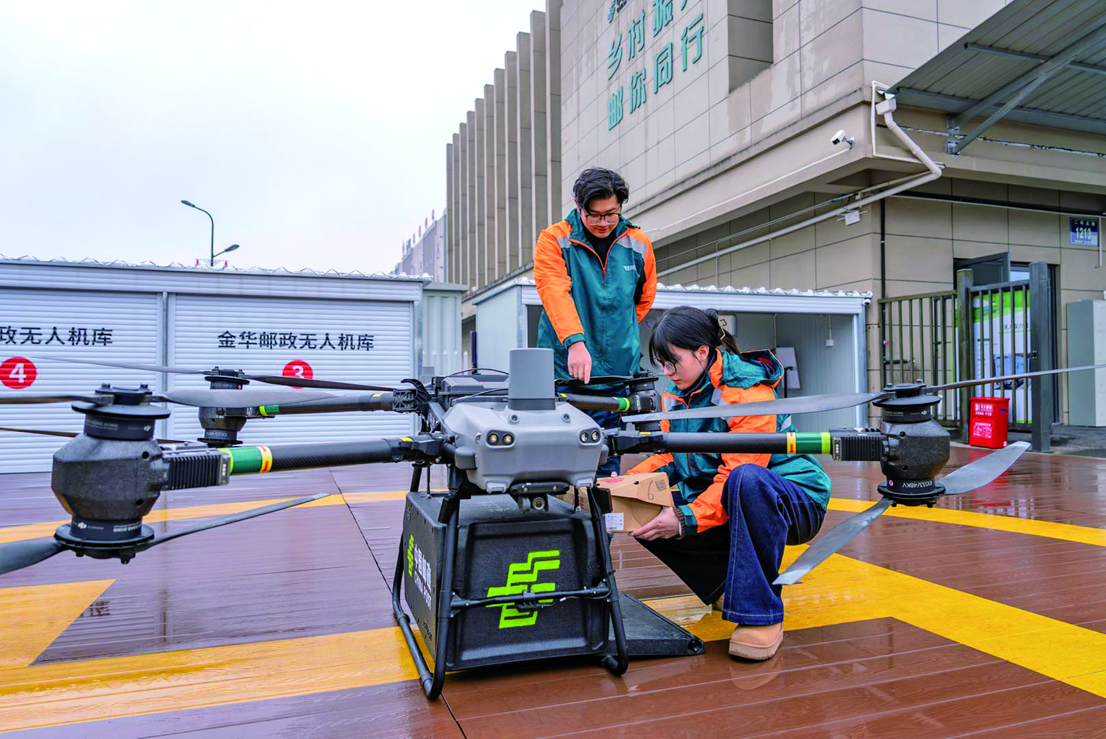 在金华邮政的无人机配送指挥中心,运营管理部副经理陈帆指着大屏幕介绍:“智慧监控系统实时回传相关飞行数据,无人机的实时位置,飞行画面,剩余电量等信息一目了然。我们还有一个紧急物品‘随到随飞’服务,在盘前村设置简易驿站、在水果市场配备代运物品接收站,确保服务高效落地,全程可控。”