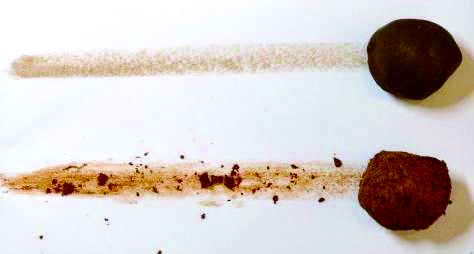 2.涂擦实验(图二)真有趣!把1号、2号土壤的泥球在白纸上擦一擦,1号土壤在纸上留下的痕迹 ,2号土壤的痕迹 。