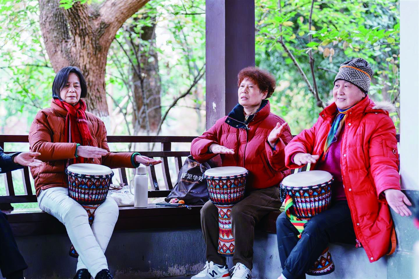 新年伊始,市区婺州公园内鼓声阵阵,笑语盈盈。亭台之中,一群阿姨手持非洲鼓,和着欢快的节奏拍打吟唱。她们神采奕奕,在韵律中乐享退休生活。 本报记者 楼冀阳 文/摄