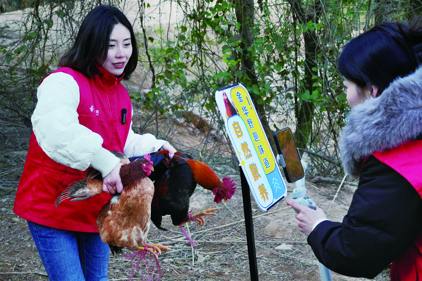 昨日,金华邮政“金邮甄选”直播间团队来到婺城区汤溪镇厚大村,为村里的跑山鸡做起了助农直播,当天限量供应的300只厚大跑山鸡全部售罄,更有幸运购买者收到无人机当即配送的惊喜福利。 本报记者 傅俊 文/摄