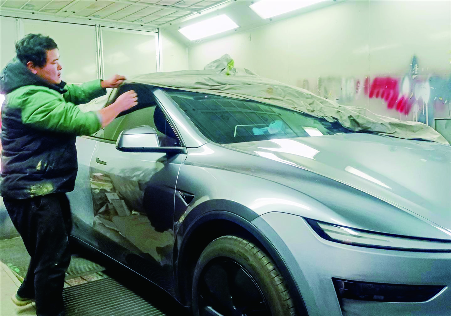 随着新春佳节临近,汽车4S店迎来了保养高峰期,特别是计划自驾出游的车主,会选择对车辆做全面检查。图为昨日,在市区一汽车修理店内,店员在为车辆补漆作准备。 本报记者 李建林 文/摄