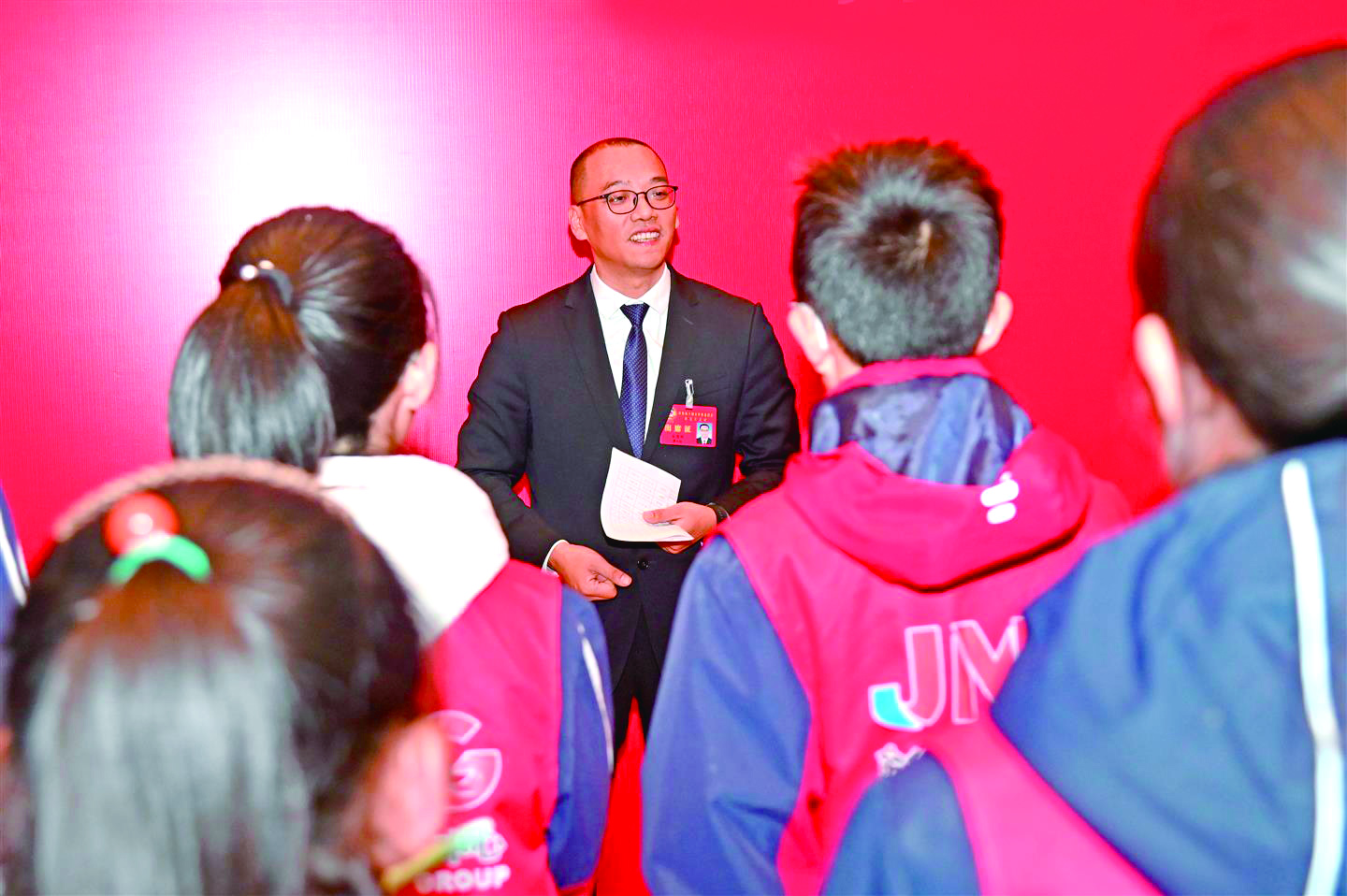 1月19日下午,一群身穿校服、佩戴红领巾的小记者来到委员驻地,面对面采访金华市政协委员、金华市体育局局长朱慧刚。