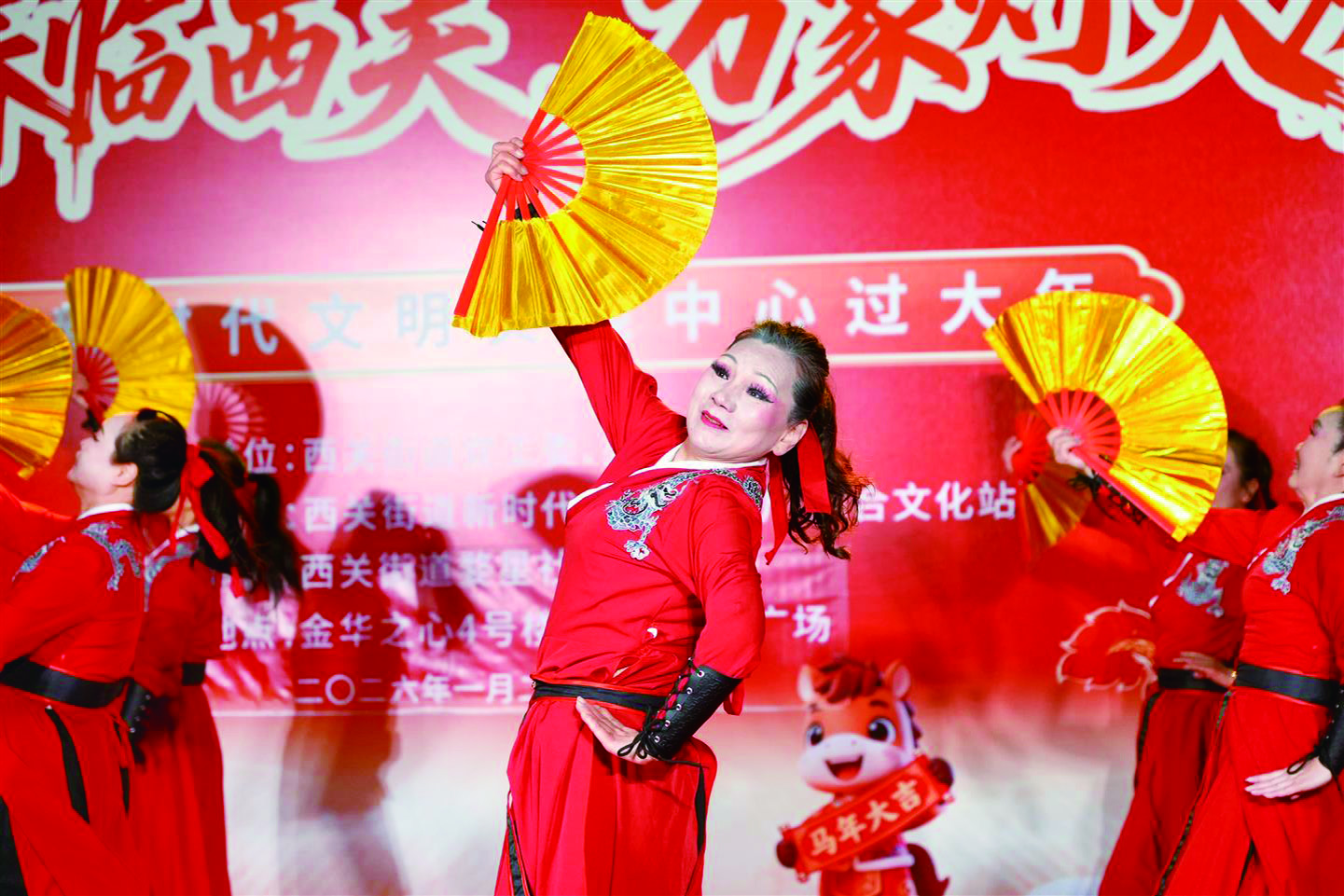 1月21日晚,婺城区西关街道新时代文明实践广场灯火璀璨,一场以“金马踏春临西关,万家灯火庆团圆”为主题的文艺演出热闹上演。尽管寒风凛冽,市民在欢声笑语中感受浓浓年味。 现场,歌舞、曲艺、魔术等节目轮番登场,穿插其中的互动环节更将现场气氛推向高潮。随着《中国龙》的旋律响起,演出圆满落幕,而文明实践的暖流悄然浸润着西关街道的每一个角落。 据了解,本次演出是“文明实践迎新春”系列活动之一,旨在通过群众喜闻乐见的形式弘扬传统文化,营造邻里共庆的温馨氛围。 本报记者 俞佳妮 文/摄