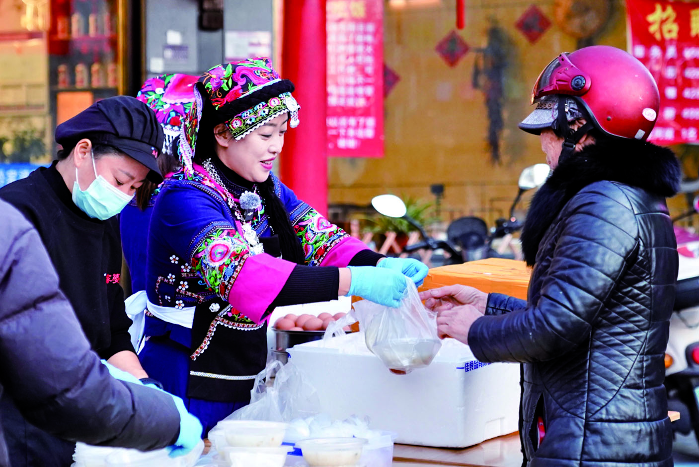 上月27日,本报头版以《贵州姑娘在东阳,一年送出15000份早餐》为题整版报道了钟朝群的爱心故事。这名来自贵州黔南的布依族姑娘,因年少时在东阳得到过陌生人的帮助,便将这份善意铭记于心。自2024年年底开店以来,她坚持免费送爱心早餐,从不固定时间赠送,到每周固定开展,从夏日绿豆汤到冬日腊八粥,她用细微的举动,温暖着这座城市。
