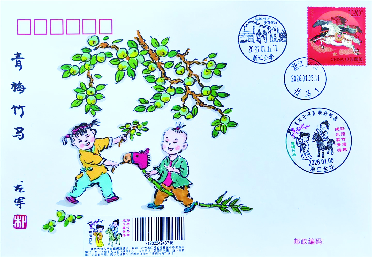 农历马年快到了,近日,全国集邮漫画研究会副会长龙军发布了一组马年原创漫画手绘封,引发广泛关注,他在作品中又一次融入了金华元素。