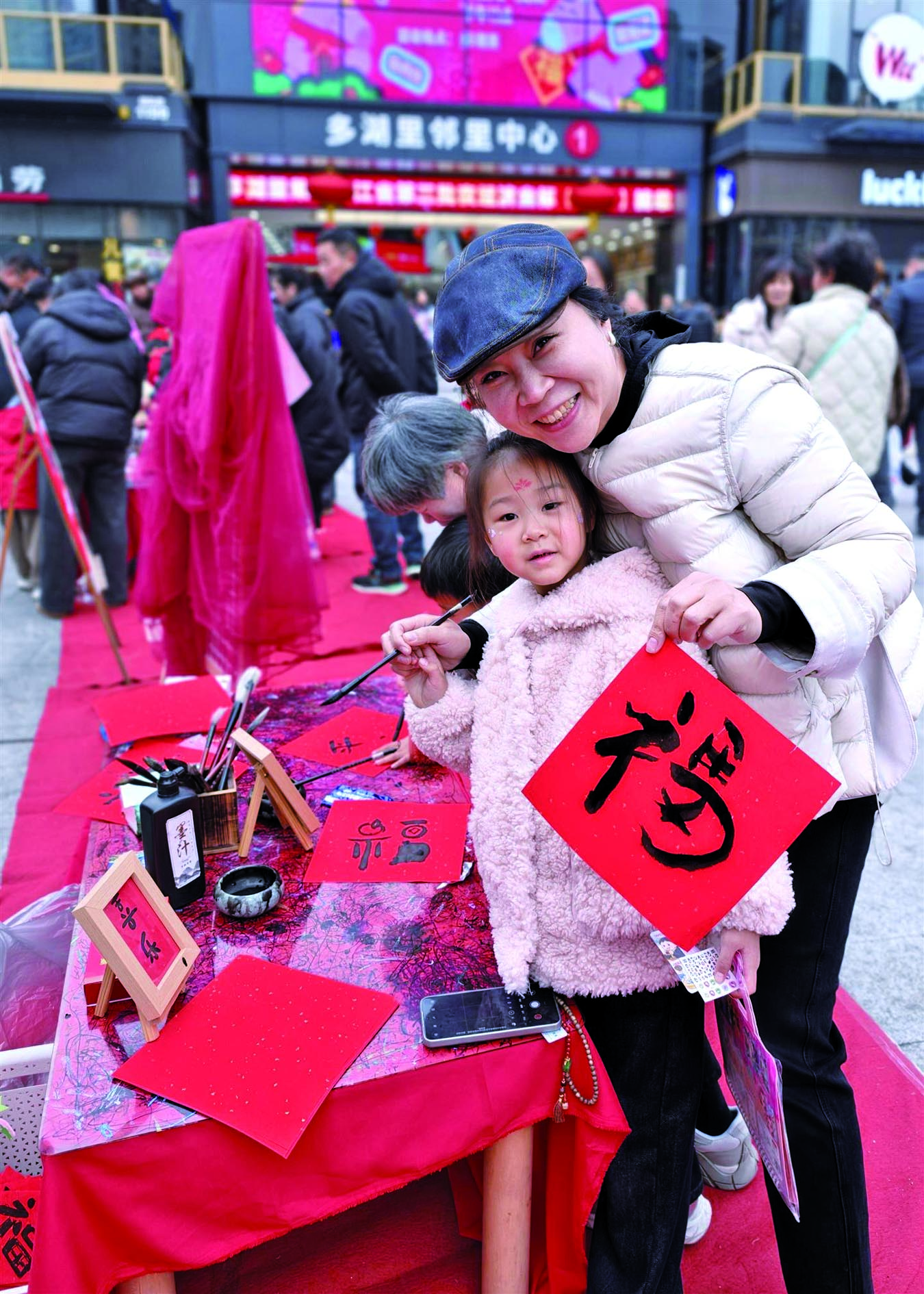 1月29日,金东区多湖街道金都美地社区联合金华市实验幼儿园开展了“大街寻年味”社区新年联动活动。活动现场年味十足,趣味游戏区福字拓印、迎龙灯、夹娃娃等活动让不少孩子在动手实践中感受传统年俗。 本报记者 傅俊 通讯员 方圆 摄