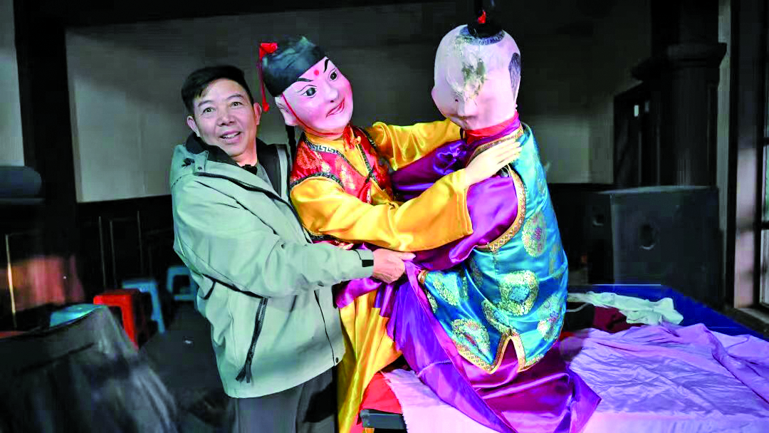 创作这个节目的灵感,源于10年前吕庭星偶然在报纸上看到的一篇文章。“这篇关于山西传统非遗舞蹈《二鬼摔跤》的报道中,有一段演员背驮两套傀儡演绎摔跤的描写,让我脑子里闪过以前听老艺人提起的‘一人演两人’的独角戏形式,于是萌生了把两种表演形式结合的念头。”