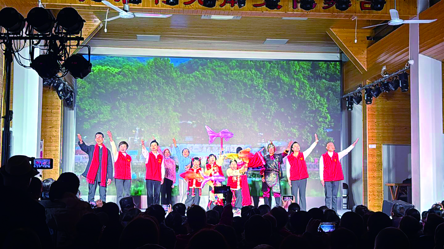 就在元宵节当晚,严店村“百家百吉”文化节上,一部由村里老中青幼四代村民共同演绎的原创情景剧《严氏风骨永流传》完成了它的首演。台下坐着的,是彼此的家人、邻居。“云山苍苍,江水泱泱。先生之风,山高水长。千群昭昭,意气扬扬。严店之承,地老天荒。”当全体演员一起念出最后一段台词,台上台下集体鼓掌欢呼时,这部情景剧的意义早已超越演出本身。