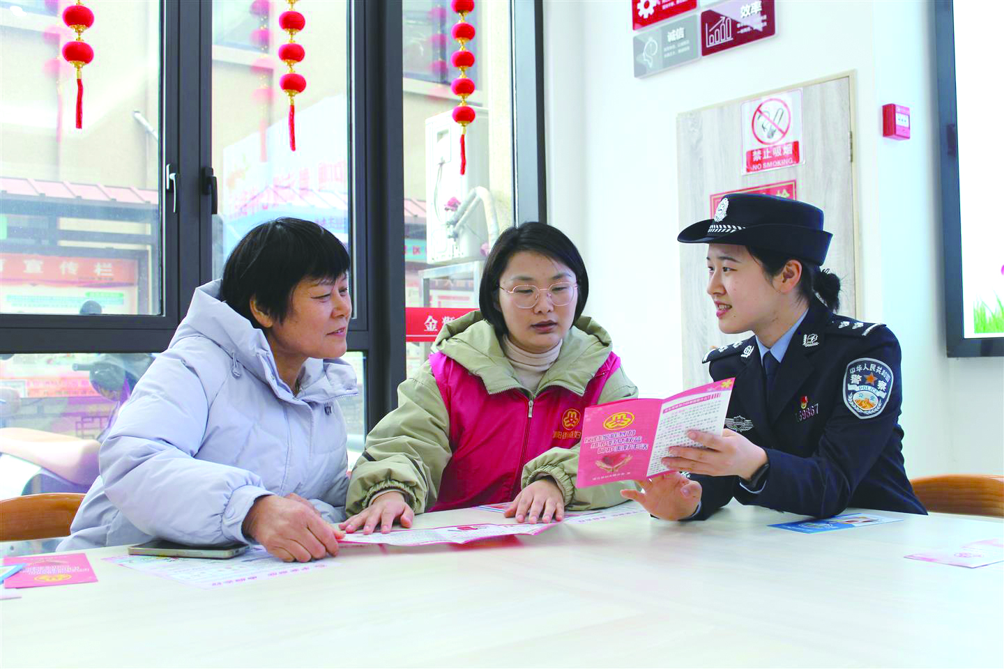 民警通过发放宣传单、以案释法等形式,为妇女群众普及相关法律知识,增强自我保护意识和维权能力。活动还设置了温馨插花环节,警民携手共庆佳节,让法治宣传更有温度、更接地气。
