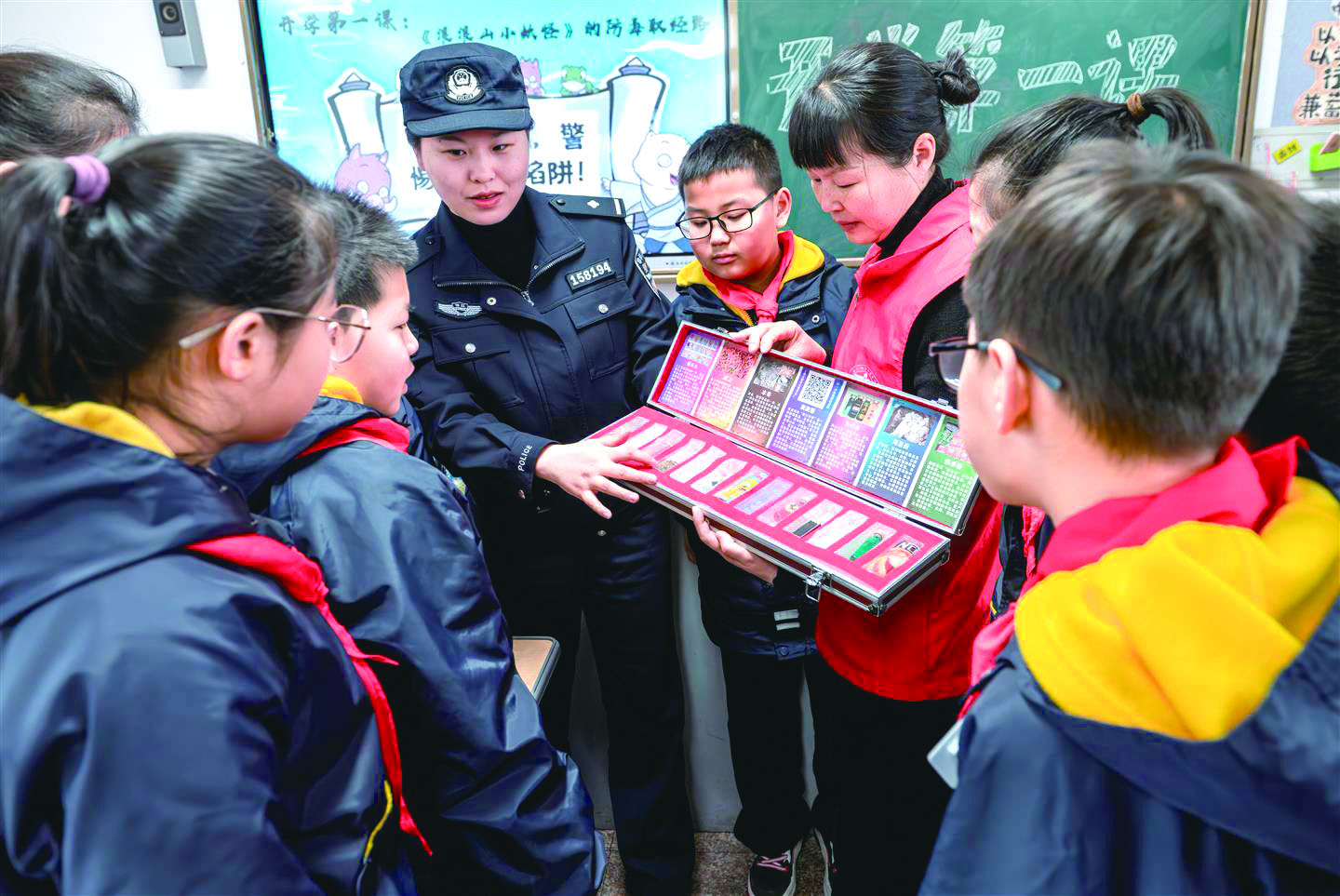 近日,武义县公安局禁毒大队民警联合王宅派出所禁毒社工,来到王宅小学开展禁毒宣传活动,为孩子们送上开学普法“第一课”,进一步增强他们的禁毒法治意识和辨识毒品能力。 通讯员 徐文荣 摄