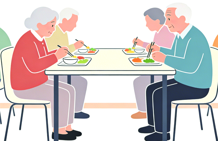 临近中午,老人们陆陆续续来到食堂,有的拄着拐杖慢慢走来,有的骑着车,有的坐着轮椅由老伴推过来,还有一位眼睛残疾的老人拄着盲杖从远处走来。邵兰一看到他,立马走上前,牵着他往食堂走。