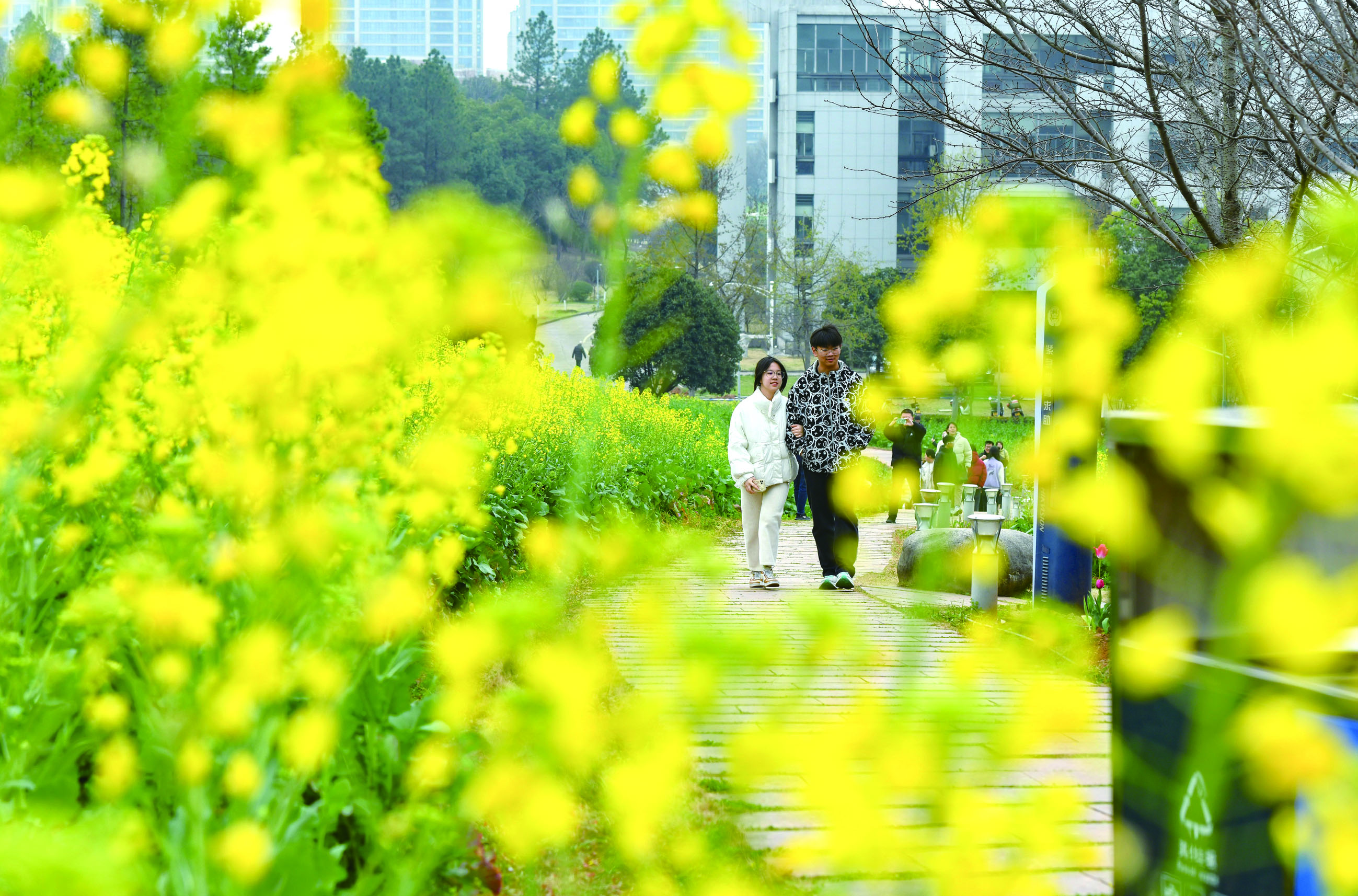 市区雅堂街上的玉兰花绽放,绵延数百米;婺江畔和浙江师范大学校园内的油菜花交织成金色的海洋;燕尾洲公园内,五彩缤纷的郁金香娇艳动人……春和景明,春花烂漫,每一朵花都在用自己的方式,宣告着春天的到来。