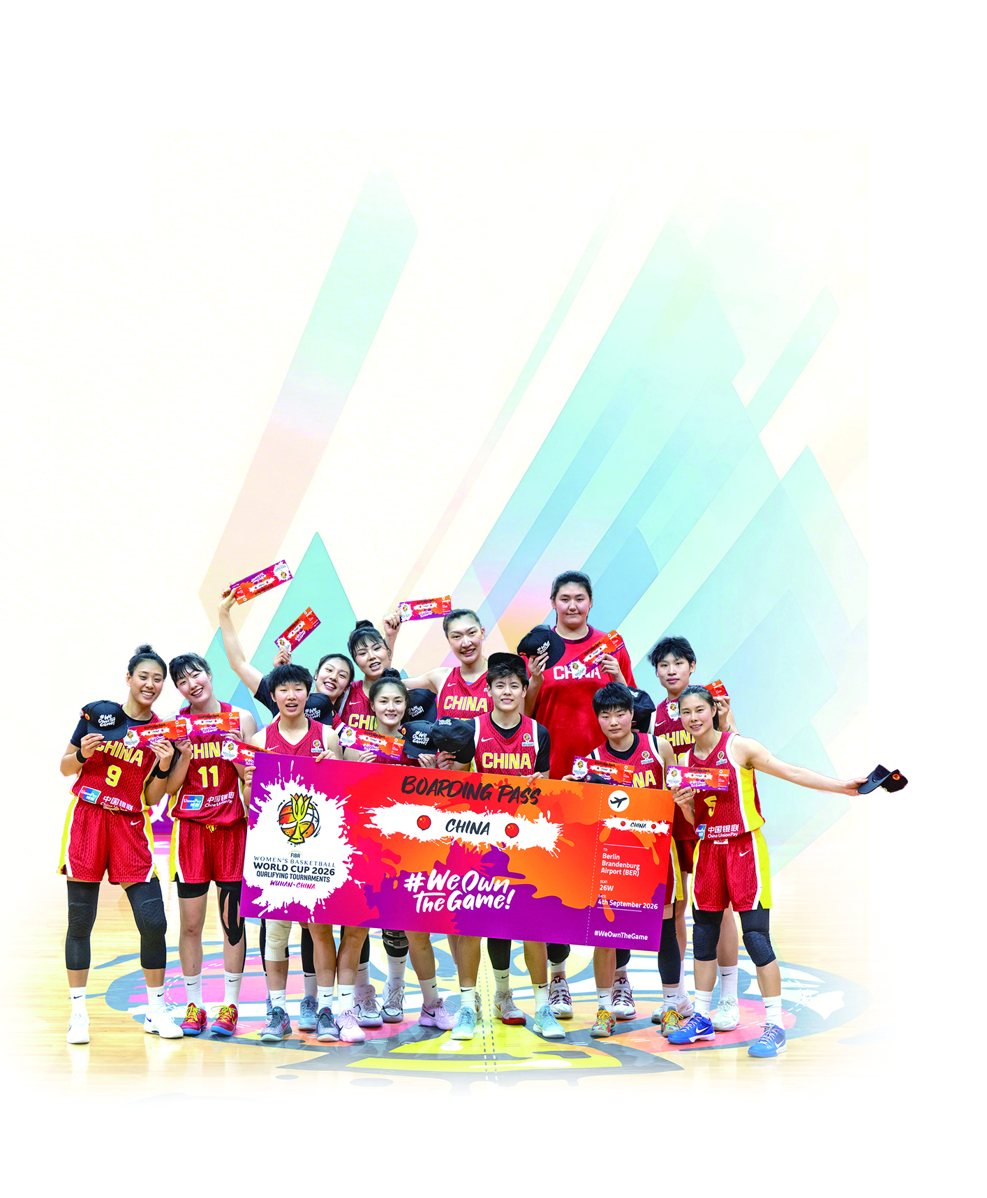 中国队球员在赛后合影(前排右二为王佳琦) 新华社记者 肖艺九 摄
