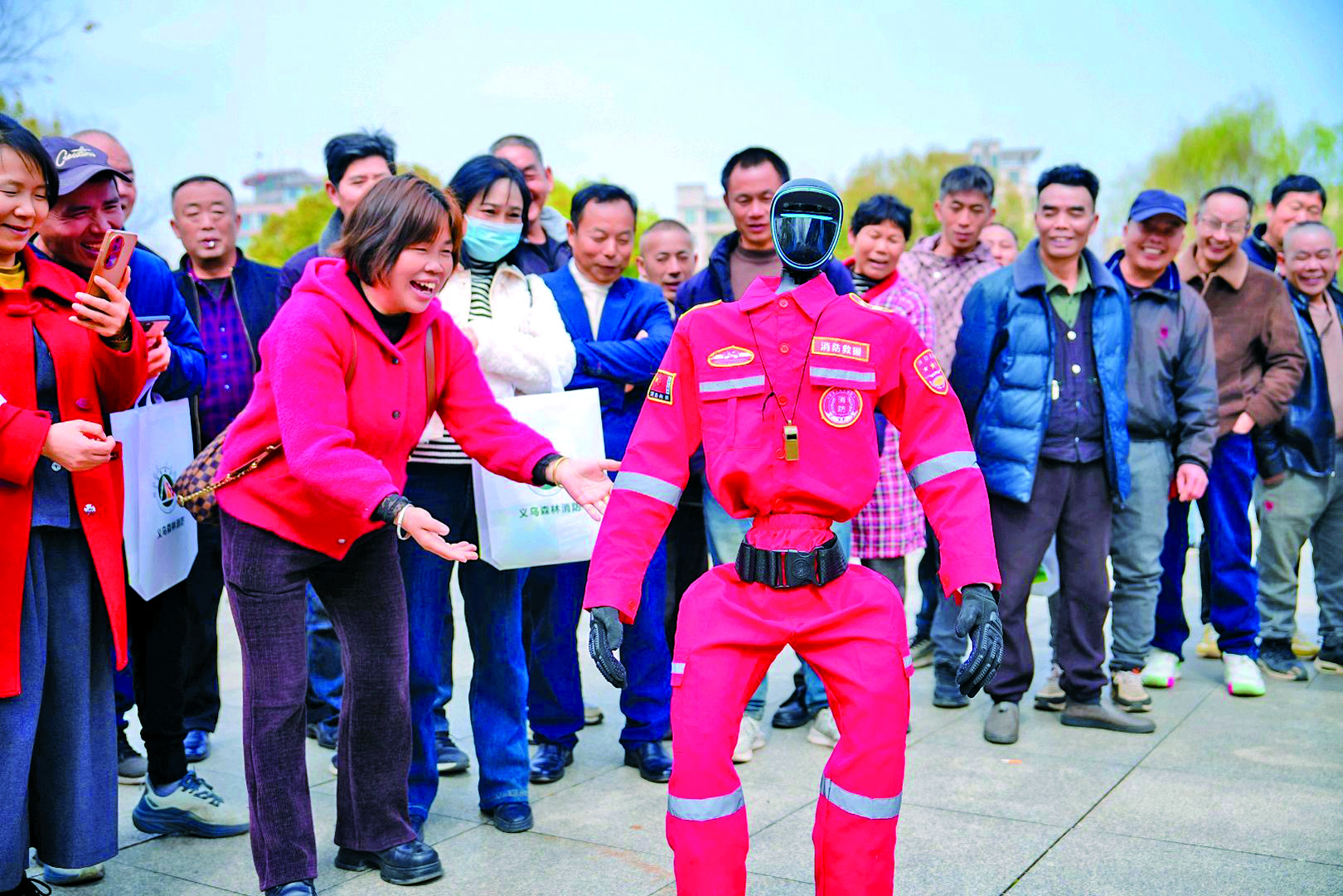 3月19日,义乌市在上溪镇月湖广场举行“3·19”森林消防宣传日主题活动。现场,无人机模拟火情侦察与灭火作业,机器人结合“哪吒说唱”表演防火知识,通过“科技+文化+体验”模式,让市民“零距离”感受科技防火魅力。 本报记者 王志坚 通讯员 李少佳 文/摄
