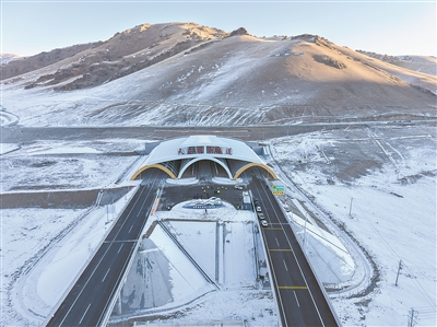 12月26日拍摄的新疆乌尉高速公路天山胜利隧道口(无人机照片)。