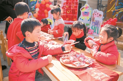 15日,市第二实验幼儿园开展“巧手传年韵,福暖邻里心”新年主题活动。孩子们亲手制作年味礼物,并以一场充满童真与温暖的“送福行动”,为毗邻的市教师进修学校的老师们送上诚挚的新春祝福。