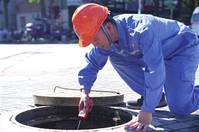 每到一个燃气阀门井,他都要停下。用撬棍费力搬开二三十斤重的井盖,弯腰贴近滚烫地面,将检测仪探头伸入井内。确认数据正常,才放心前往下一个点。汗水早已浸透衣衫,脸庞晒得又黑又红。“从清爽到湿透,汗就没停过。一天能喝3500毫升水,就当排毒了。”他笑道。