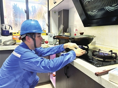 “您好,上虞天然气,预约安检。”入户安检组长杜章樑按响门铃,出示证件,套好鞋套,走进厨房。这套动作,他每天重复几十遍。手持探测器,他像侦探般仔细检查管道:有无漏气、锈蚀?是否稳固?有无挂物或暗埋?“安检不是走过场,任何细节都不能放过。”