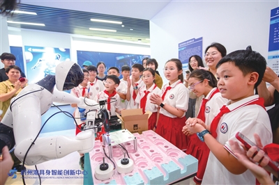 在科技浪潮汹涌澎湃的当下,如何让青少年近距离感受前沿科技的魅力,激发他们对科学探索的热情,已成为教育领域的重要课题。杭州湾具身智能创新中心自今年7月正式启用后,以独特的科技魅力与丰富的研学资源,成为众多学生团队开启科技探索之旅的理想之地。