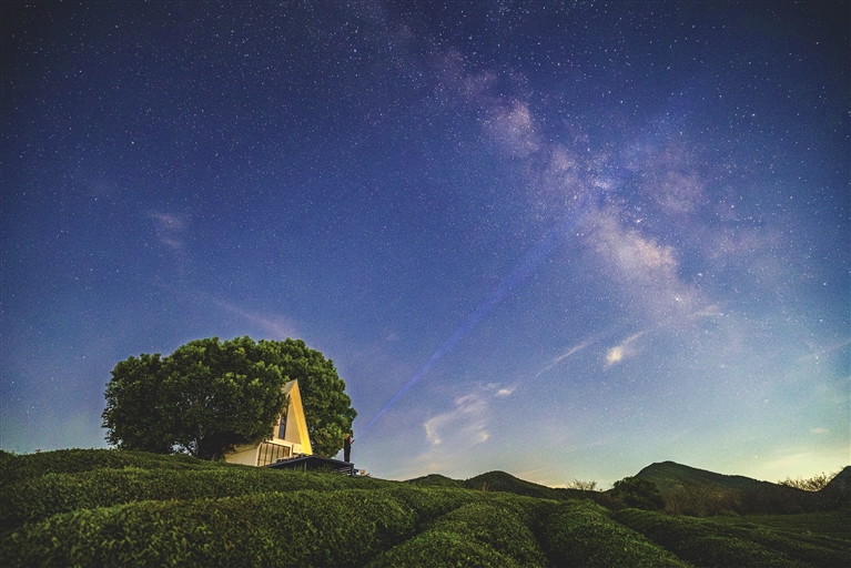 连日来,章镇心池民宿因茶园风光与无光污染环境,吸引众多摄影爱好者。他们在此捕捉银河,带动星空摄影热潮,让这片山野成为摄影创作新打卡点。 记者 魏新宇 通讯员 成炀 摄