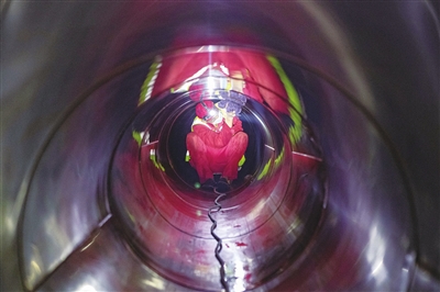 近日,进港公路冯柯山段地下自来水管道修复工程有序施工,工人正为该路段DN800供水管道安装不锈钢衬管。