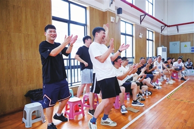 华兴队的“灵魂人物”当属老总田森锷,这位被大家称为“最会打篮球的老总”,对篮球的热爱几十年如一日。比赛期间,他既是球队的“定海神针”,在场上指挥进攻、争抢篮板;也是团队的“精神支柱”,场下给队员们复盘战术、加油鼓劲。“打‘驿BA’不是为了争名次,就是想和大家一起感受这份热血。”田森锷说。为了支持球队,公司还组织了啦啦队。职员王先生笑着说:“平常大家工作之余就喜欢一起打个球,整体氛围很轻松。”