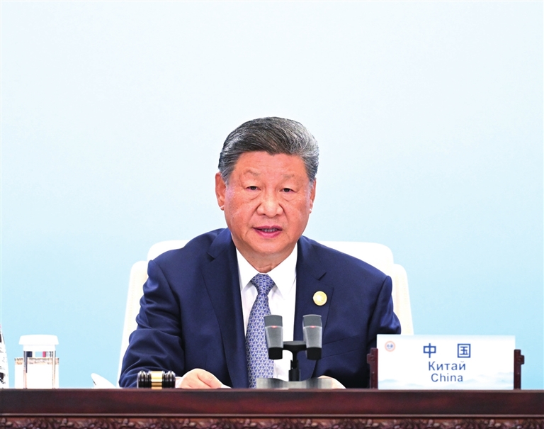 五是坚持务实高效。持续推进上海合作组织改革,加强资源投入和能力建设,让组织机制更完善、决策更科学、行动更高效,为成员国安全和经济合作提供更有力支撑。