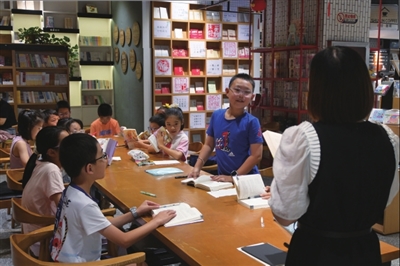 走进区图书馆,10余对如顾女士这样的亲子家庭齐聚一堂。6岁的沈珂和外婆郭爱武欣喜地打开书本,在工作人员引领下,进行角色扮演的故事阅读、编写阅读计划和清单,种种趣味阅读让祖孙俩手不释卷、津津有味。