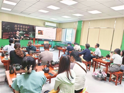 本报讯 (记者 戚罗燕 通讯员 史皓翼) 近日,陈溪乡成人学校内,清雅茶香悄然弥漫。一场沉浸式的茶艺培训课正浸润着学员们的身心。老师循循善诱,从茶史渊源娓娓道来,到温杯、投茶、注水、出汤的优雅仪轨精妙示范;学员们凝神静气,在袅袅茶雾中细嗅慢品,体悟茶道精神。指尖于茶器间流转,不仅习得实用技艺,更在提升审美意趣中触摸中华传统文化。