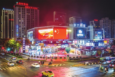 9月30日,时代广场巨型LED屏滚动播放国庆主题光影秀,璀璨灯光与“中国红”交相辉映。城市高楼鳞次栉比,街头巷尾红旗招展,处处洋溢国泰民安的节日氛围。
