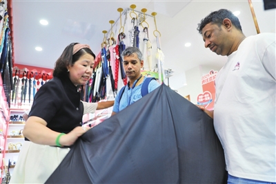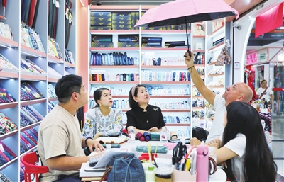 “Hello!”只要看到有客商的眼神扫过自家店铺,张吉英都会热情地打招呼。当客人走进店里,不管下不下订单,张吉英总会拿出十二分真诚对待。在她心里,要让对方在异国他乡感觉像在家一样。