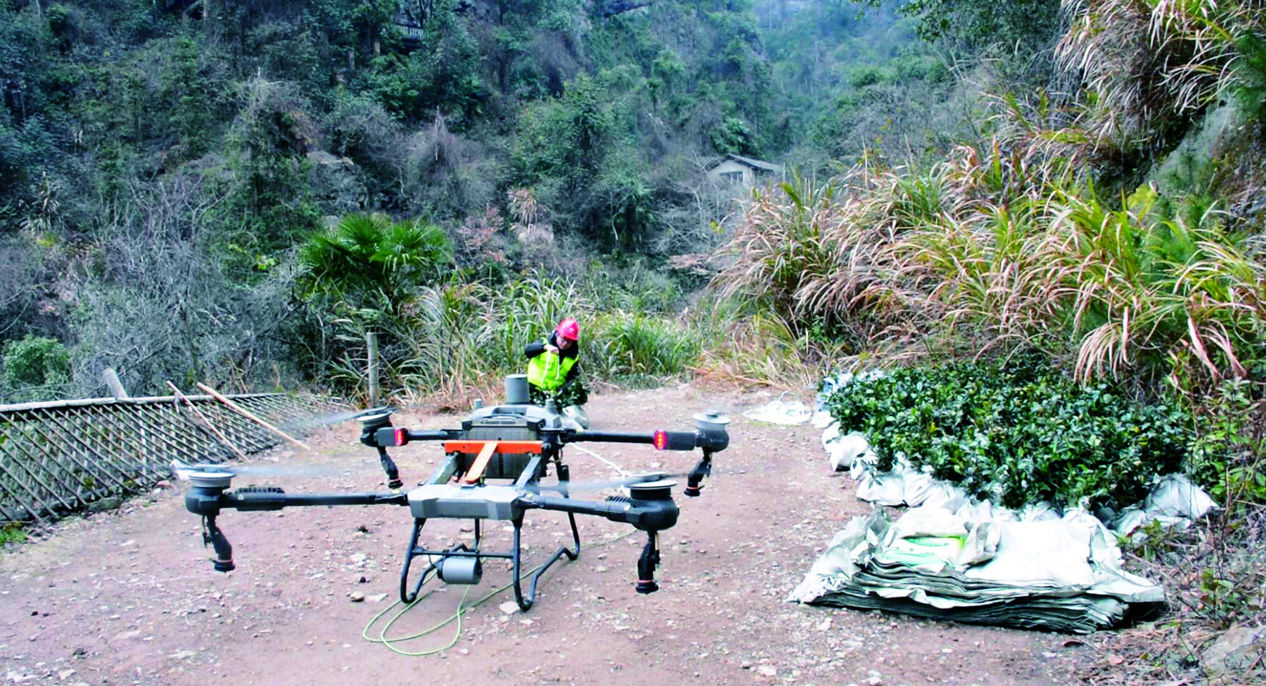 2月25日,永康大寒山上,一架装载着茶苗的无人机缓缓升起,向茶场方向飞去。几分钟后,这批茶苗在距离起飞点1580米外的茶场着陆。“以前用马运输,这2000棵茶苗可能需要一周才能运完,现在用无人机运送只需要一天。”茶场负责人朱镇波说。