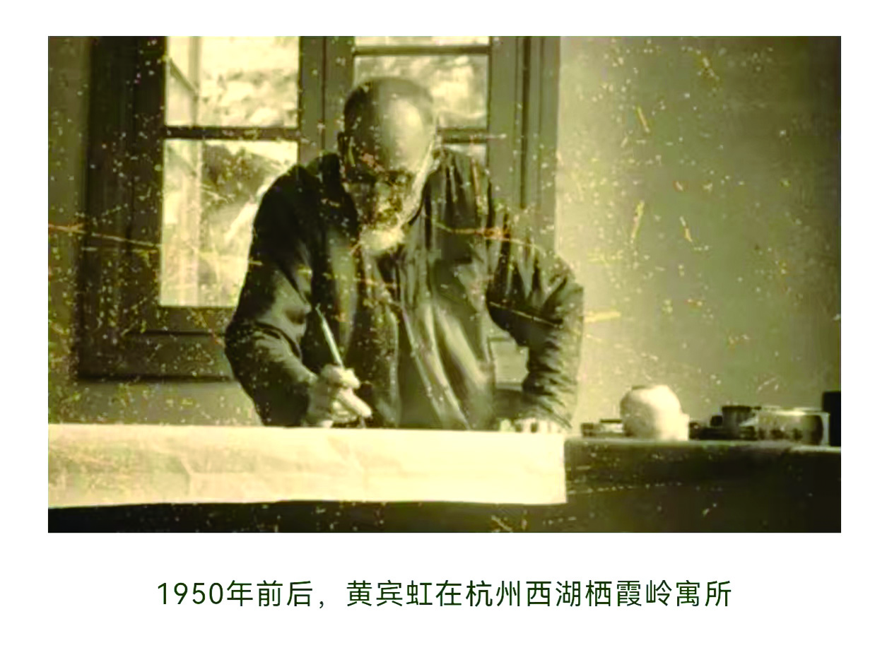 1948年春天,黄宾虹接到杭州艺术专科学校(今中国美院前身)的邀请担任国画教授。同年9月,黄宾虹在女婿赵志钧陪同下,乘飞机途经上海来到杭州。当时下榻在栖霞岭19号艺专宿舍。黄宾虹来到杭州时已经85岁,为什么如此高龄的老人晚年选择在杭州定居呢?