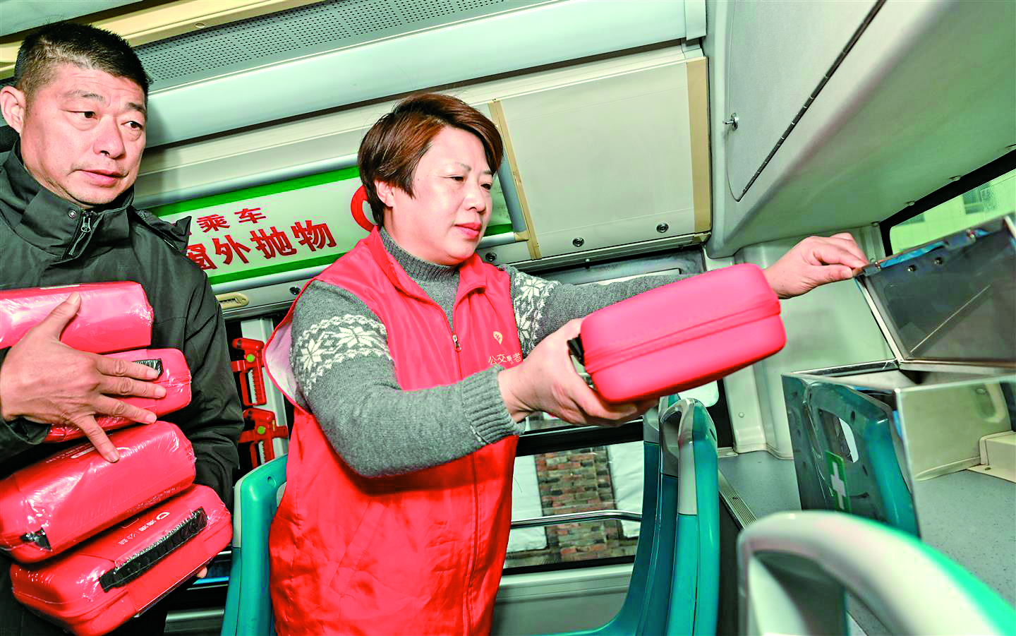 记者 李建林 文/摄 昨日,市交投公交集团客运金西公司在公交车上投放一批便携急救包。这些急救包由市红十字会捐赠,里面有医用外科口罩、止血纱布、绷带、止血带、医用手套等常规急救用品。同时,公交车上还配备了反光背心、高频口哨、车用破窗器等物品,为广大市民平安出行保驾护航。