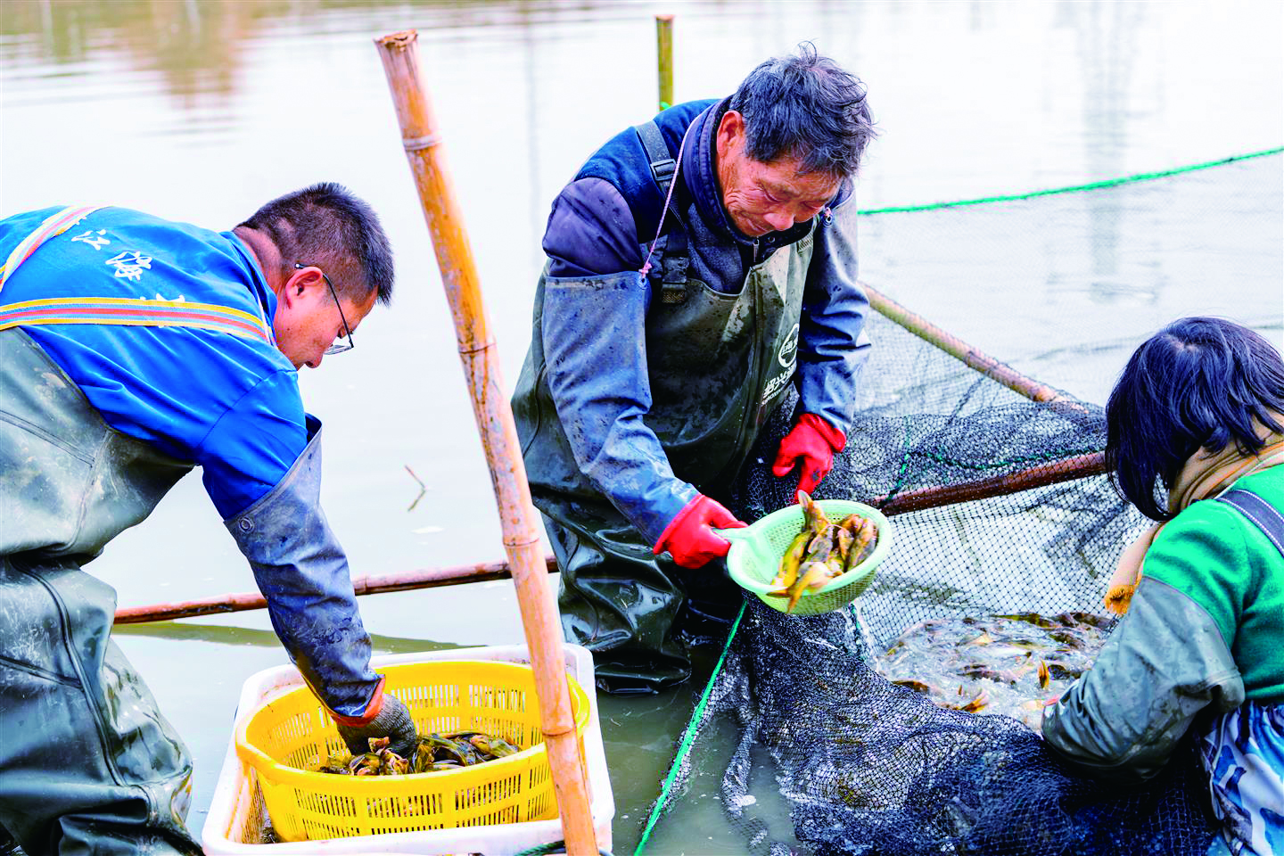 记者 陈业 文/摄 眼下是春蚌寄苗的关键时节。昨日,在武义县一处黄颡鱼养殖基地,养殖户王际全和村民们忙着打捞黄颡鱼,之后进行寄苗工作。 寄苗是将母蚌产的钩介幼虫寄生到黄颡鱼上,这是珍珠蚌苗养殖的关键一步,成功率直接影响到蚌苗的收成。