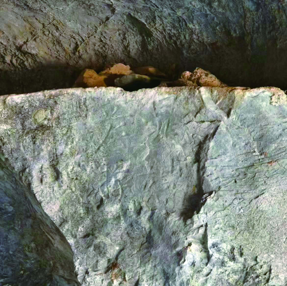 令人欣慰的是,除了这一处外,笔者还发现此前一直不为外界所知,不见著录的另一处晁端彦题名,也在距离洞口不远的地方,文为“晁端彦来”,比前面那一处字要大,“来”字较模糊。