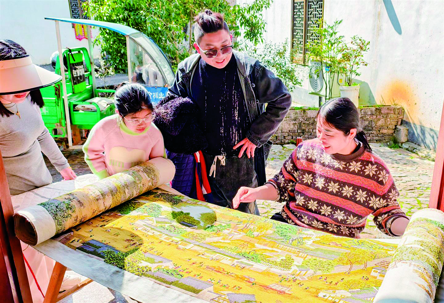 通讯员 郑文良 文/摄 昨日,浦江县白马镇嵩溪村52岁的村民张文霞在家门口专注绣制一幅长达22米、宽1米的《清明上河图》十字绣。 张文霞自2011年开始绣制该作品,每日绣制2至3小时,至今已完成9米。绣布上,北宋街市的繁华与市井百态通过百万针彩线渐次浮现。张文霞说,等孩子工作稳定了,自己就能全心投入,力争在60岁前完成作品。