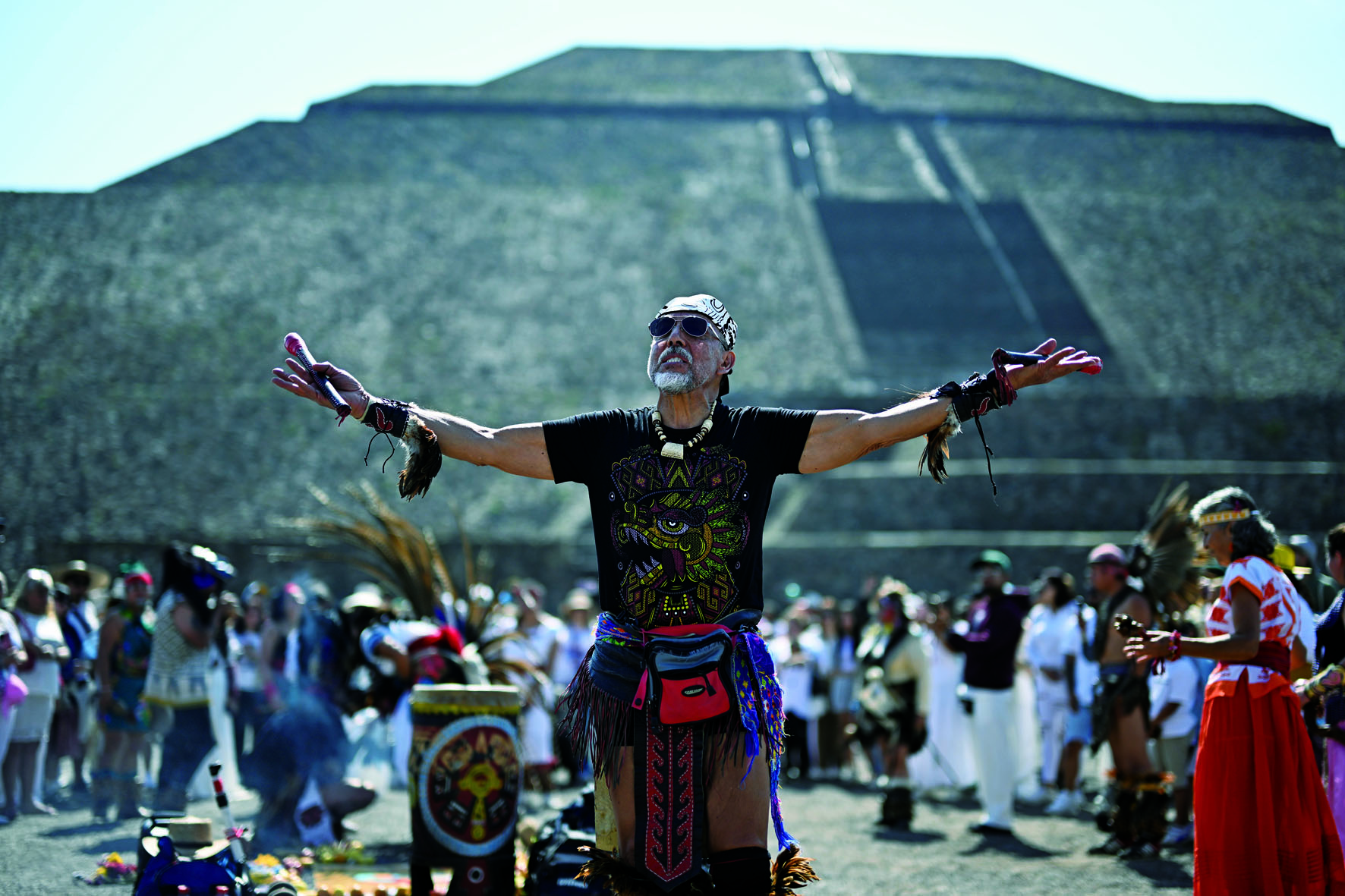 3月21日,一名男子在墨西哥特奥蒂瓦坎太阳金字塔下沐浴阳光。 当日,迎接春分的活动在墨西哥特奥蒂瓦坎日月金字塔举办,人们沐浴日光、汲取能量。 新华社发