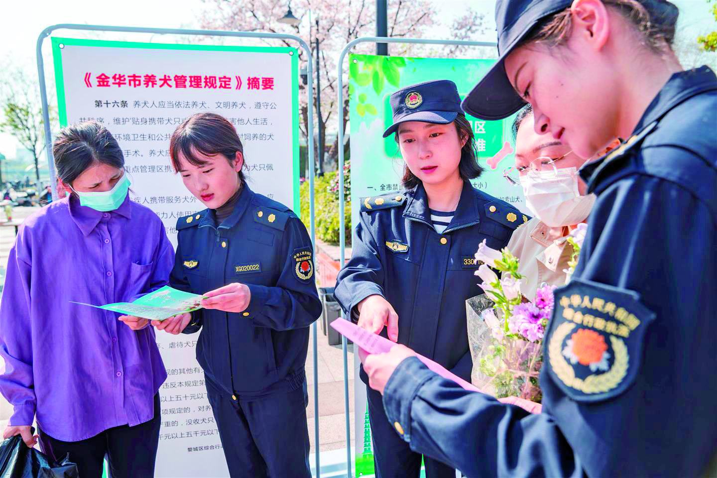 记者 陈业 文/摄 3月25日上午,婺城区综合行政执法局在婺江西路组织开展文明养犬宣传活动,通过多种形式向市民普及文明养犬知识,营造整洁有序、和谐健康的城市环境。 活动现场,执法队员通过设置宣传展板,向市民展示文明养犬相关法律法规、全市禁养犬名录及文明养犬注意事项等内容,吸引了不少居民驻足观看。同时,执法人员还向过往市民发放《文明养犬宣传手册》,并耐心解答犬只登记、免疫、遛犬规范等常见问题,倡导市民依法养犬、文明养犬。
