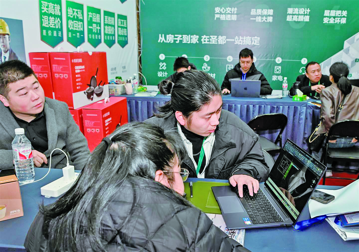 记者 李建林 文/摄 连日来,前往市区某家装公司咨询装修方案的顾客明显增多。 目前,家装市场迎来旺季。家装消费者更注重简约装修风格,喜欢打造氛围感,关注扩展收纳空间。 据了解,随着家装厨卫“国补”政策落地实施,真金白银的优惠激发了市场活力,为家装行业注入了新动力。