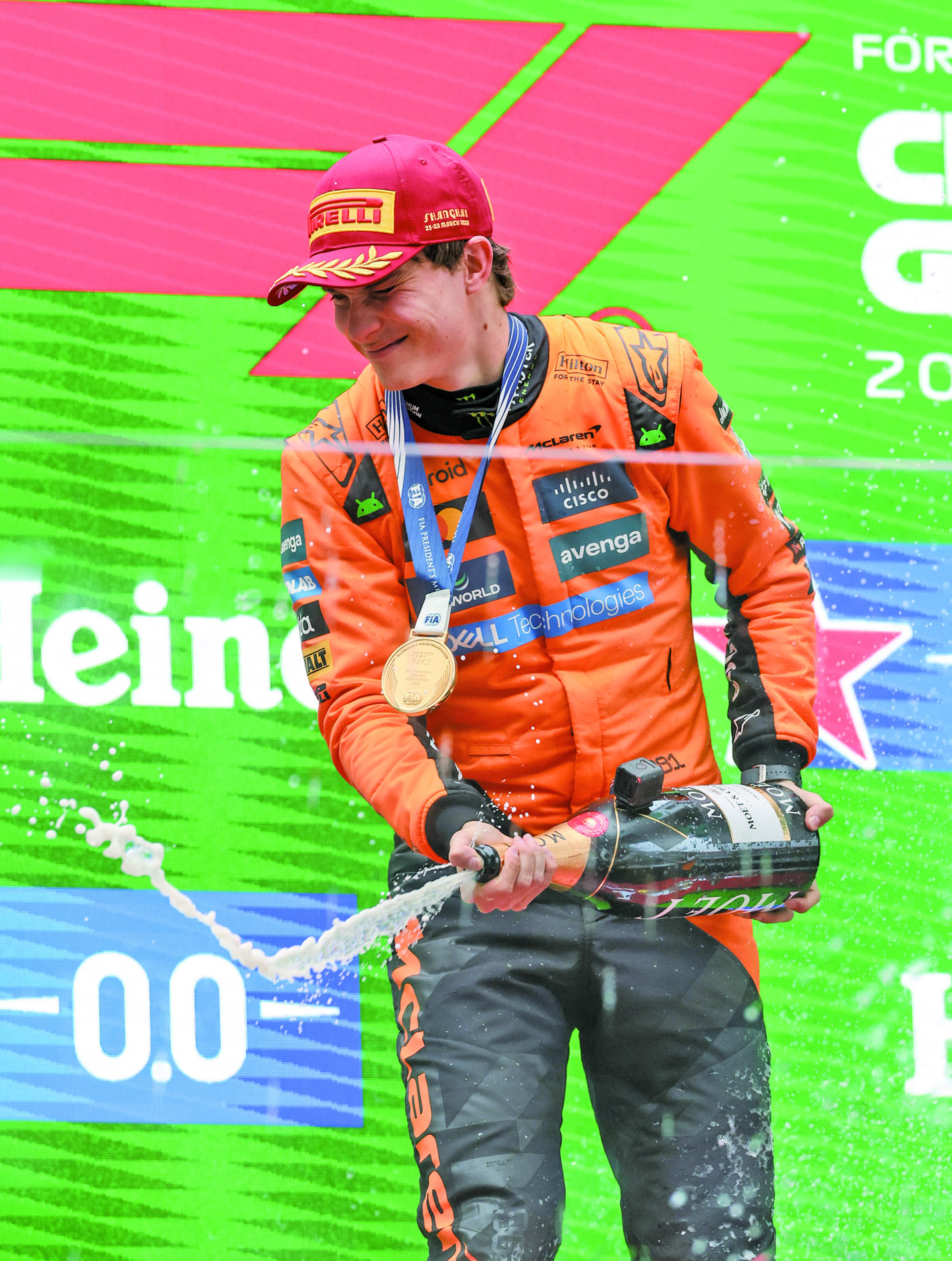 3月23日,迈凯伦车队澳大利亚车手皮亚斯特里在赛后庆祝。