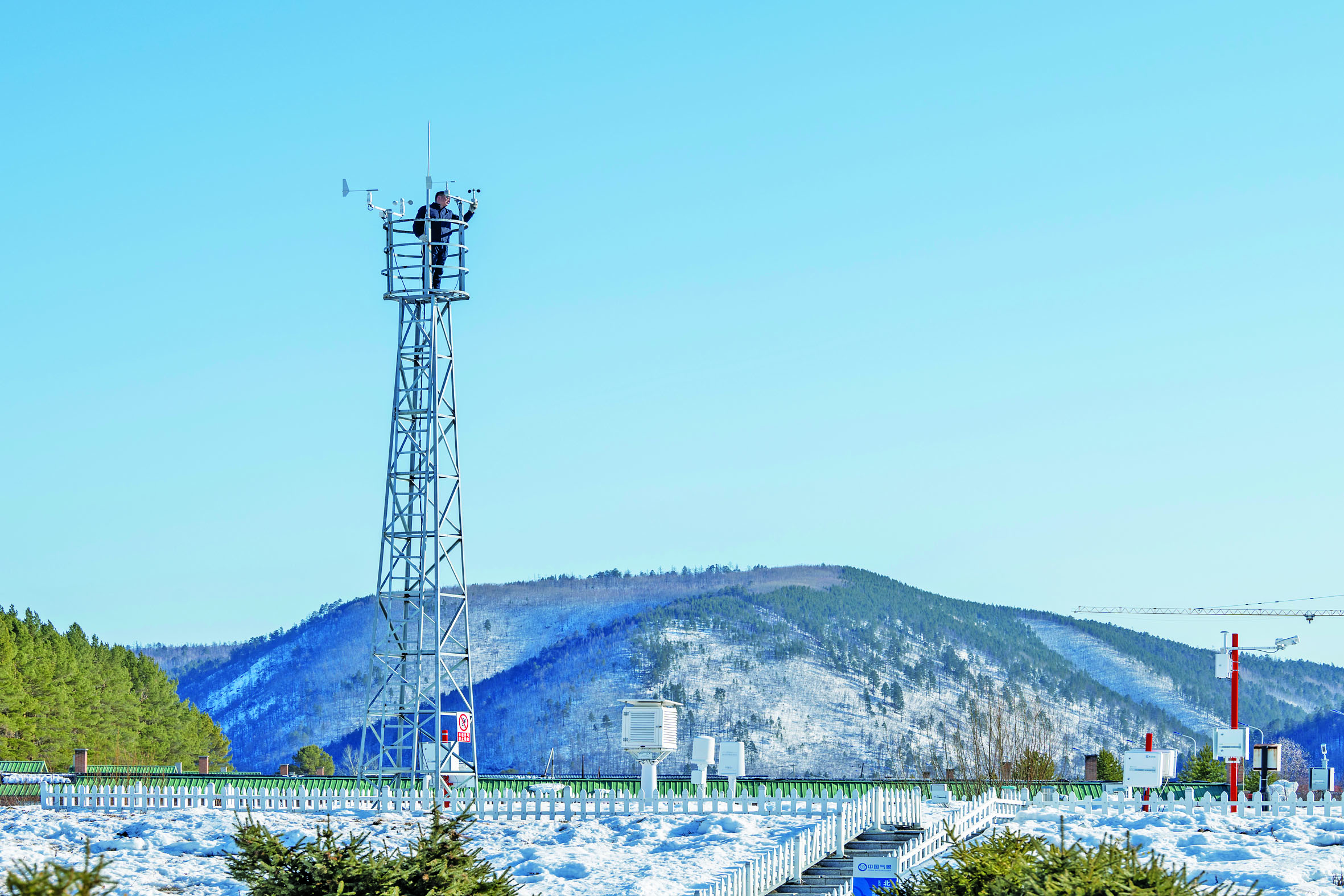 3月22日,在北极村国家基本气象站,气象测报员郭大勇在巡检设备。 入春后的黑龙江省漠河市北极村寒冷依旧,在位于村子边缘的中国最北气象站——北极村国家基本气象站,4名气象测报员坚守在这里,巡检设备、采集气象信息、上报监测数据。 1957年,北极村气象站建站,2023年,气象站升级为国家基本气象站。北极村国家基本气象站承担着大气探测、寒带建筑物温度监测等多种气象观测工作,是我国积累气象数据资料的重要台站。近年来,气象站还开展了极光监测预报,助力当地旅游产业发展。 新华社发
