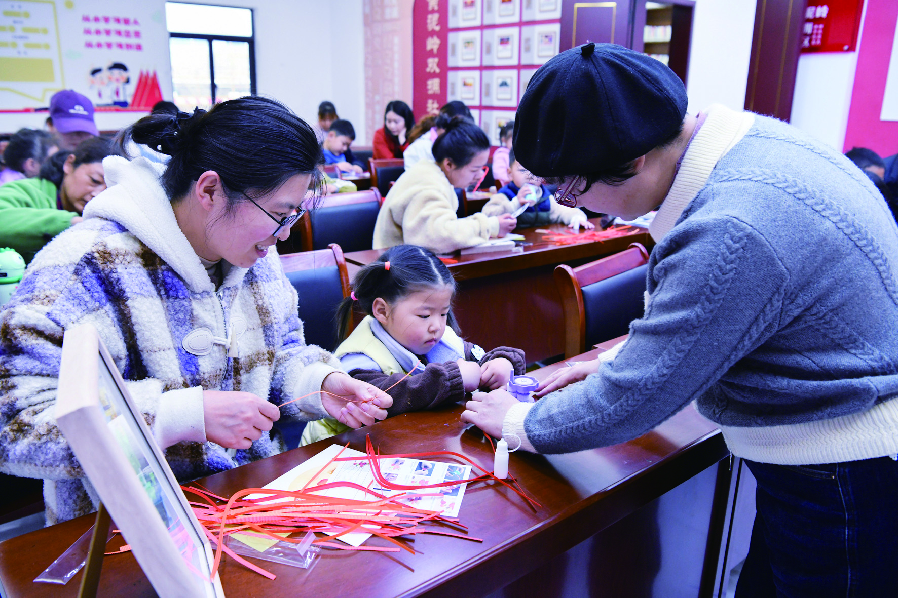 记者 时宽兵 文/摄 3月28日,市双拥办联合市妇联举办的“军嫂课堂”在婺城区城北街道黄泥岭双拥社区开课。 在首期亲子手工盘纸课上,非遗盘纸老师向大家讲解示范了“柿柿如意”盘纸制作方法。掌握基本要领后,军嫂和军娃们开始手工制作,把细长的纸条在指间慢慢卷起、折叠、缠绕……一个个精美的“柿柿如意”盘纸画陆续完成。