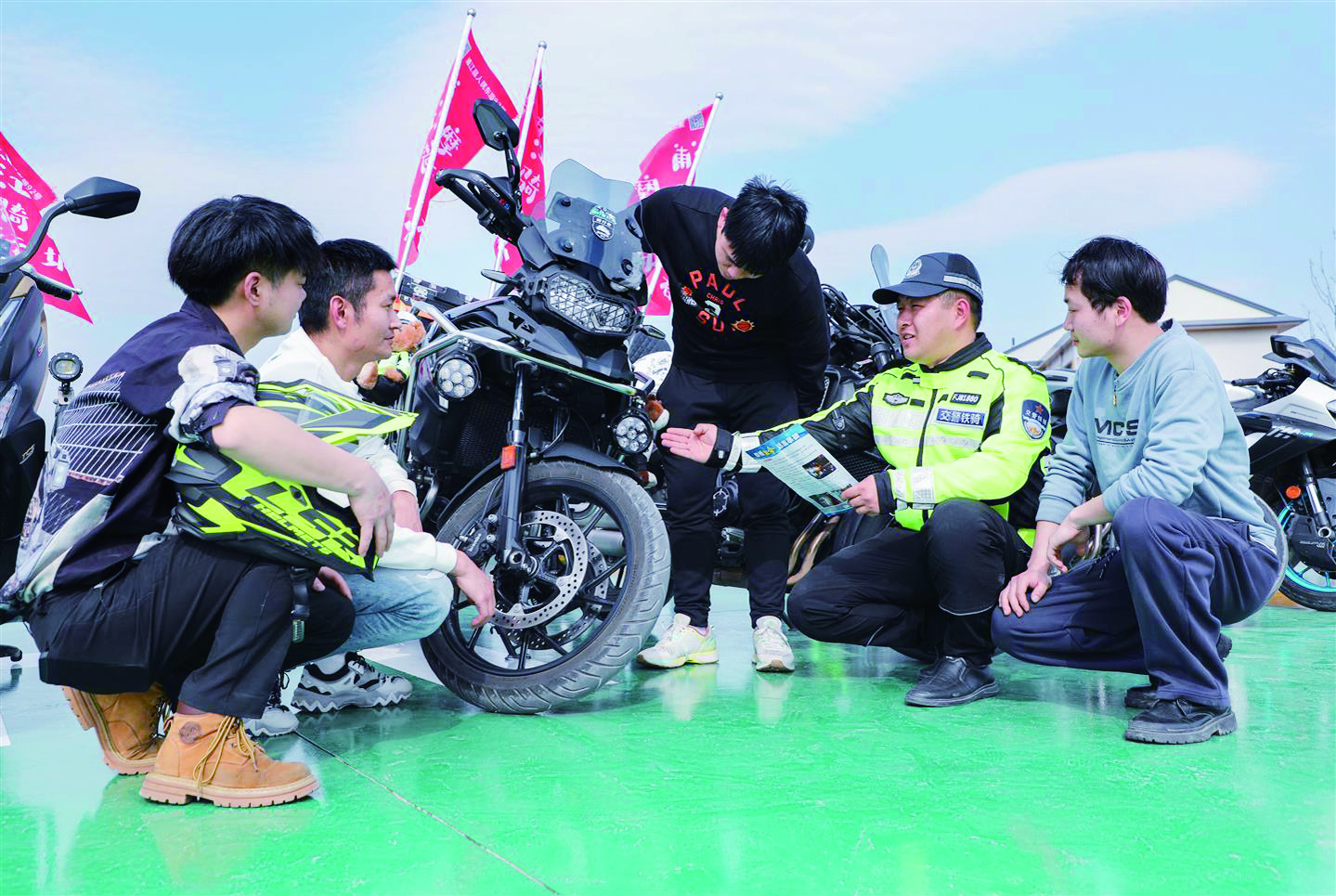 通讯员 杨晓东 文/摄 3月27日,浦江交警在杭坪镇向组团出游的摩托车驾驶人进行交通安全宣传。 连日来,浦江县公安局交警大队针对春季摩托车骑行出游增多现象,组织民警现场向摩托车驾驶人讲解出行注意事项,切实增强摩托车驾驶人交通安全出行意识。