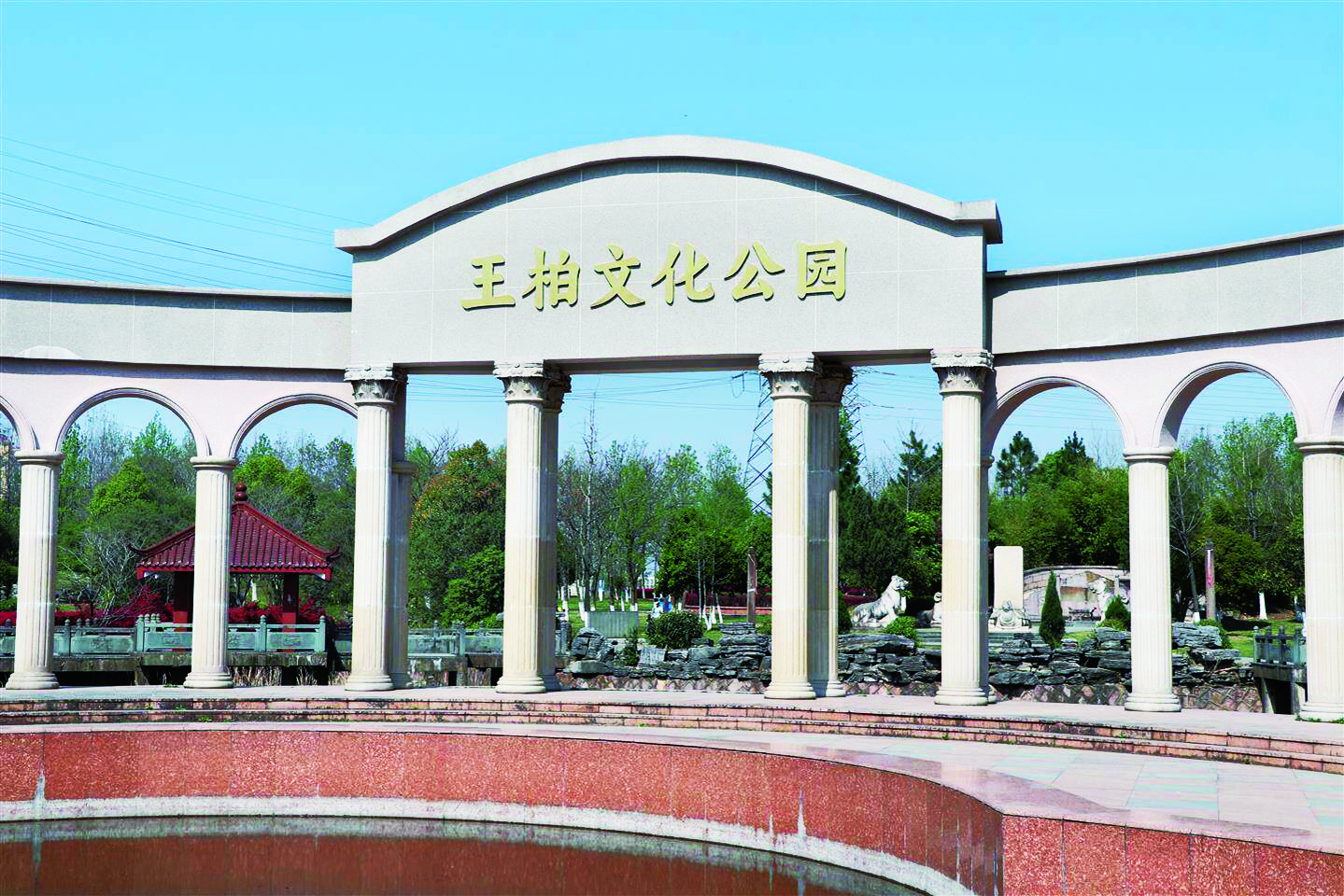 本报消息(通讯员 章一平 文/摄)3月24日,在婺城区秋滨街道王五元社区西侧,原创业公园的牌坊挂上了“王柏文化公园”几个大字。