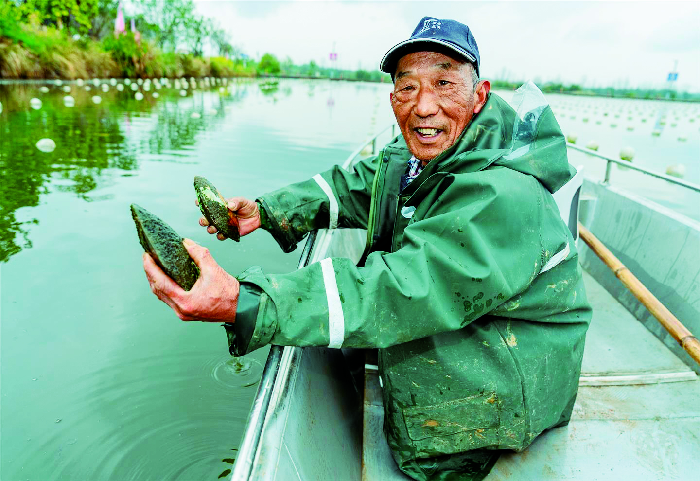记者 张辉 文/摄 近日,在兰溪市诸葛镇厚伦方村卧龙源水产养殖基地,蚌农忙着种蚌、投放、管理,水面“春耕”一派繁忙。 该基地负责人张俊达介绍,基地采用蚌鱼混养三年连收养殖,通过星光鱼塘实现“智能化诱饵、鱼粪肥水、尾水补藻、贝莲净水”。鱼塘水面的浮球在晚上像星星一样发着光,吸引虫子掉进水里,供鱼摄食,鱼又排出高蛋白给珍珠蚌……鱼与蚌的绿色共生,实现养殖效率最大化。